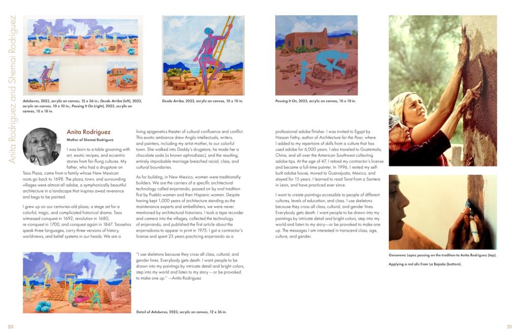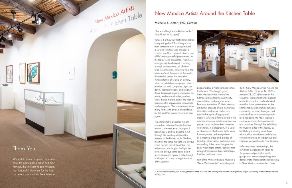 My colleague Dr. Michelle Lanteri, curator of the exhibition New Mexico Artists Around the Kitchen Table (October 14, 2023—January 24, 2024), contacted me to design a digital catalog capturing this exhibition at the Millicent Rogers Museum in Taos, New Mexico. Nicole Lawe (Karuk) photographed the spaces and art on display. For the layout design, I used a color scheme drawn from the exhibition and promo materials. I also created a pattern inspired by a tablecloth in the display for the cover and as a section design element. While the document is digital, I designed it to be 44 pages, so that it could be printed as a booklet for archival purposes. The page numbering reflects the primary usage to be read on screen.